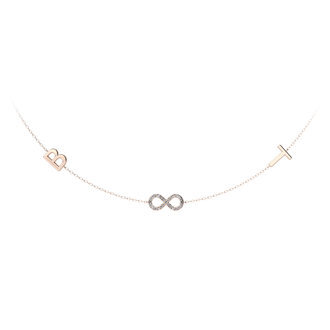 Delicate necklace featuring a diamond-studded infinity symbol and two letters of your choice. A symbol of eternity, connection, and personal meaning in an elegant minimalist design. (S125)