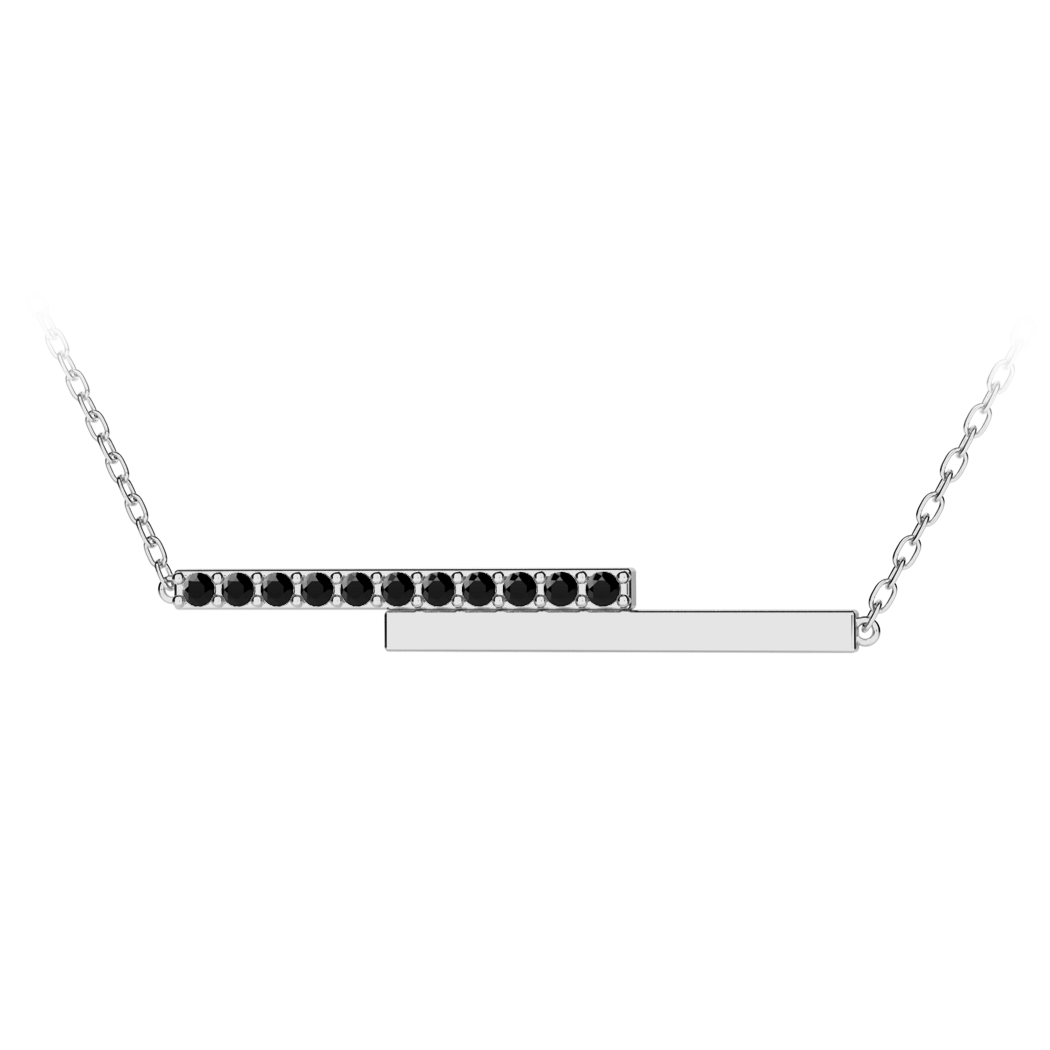 A minimalist white gold necklace with two slightly offset bars – one smooth, the other set with diamonds. Modern elegance for everyday wear. (S127/2)