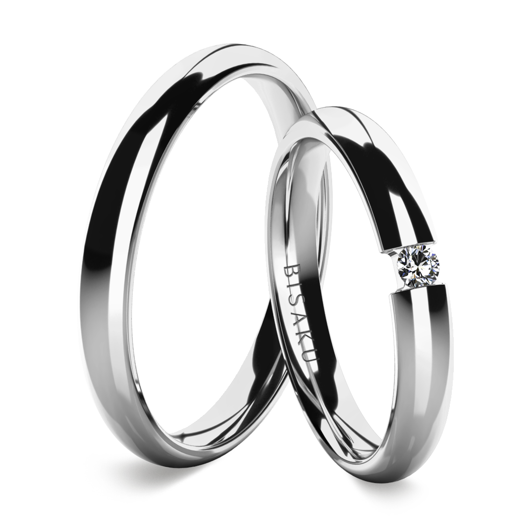 Classic and very stylish wedding rings stand out above all with the shape of their profile. They are pleasantly rounded and very comfortable. The women's ring is decorated with one stone.